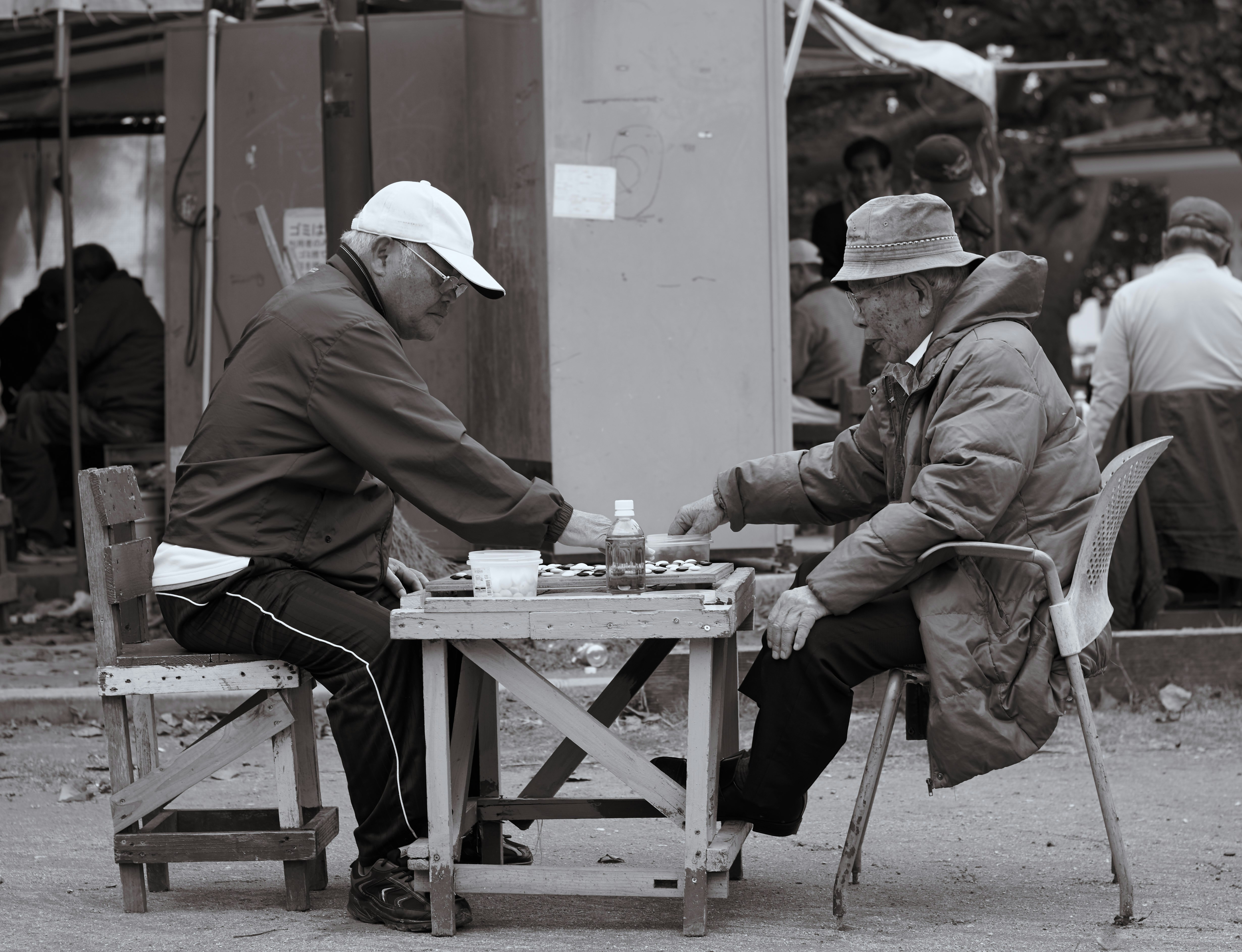 Italy—elders playing chess outside cafés owned by their grandfathers.