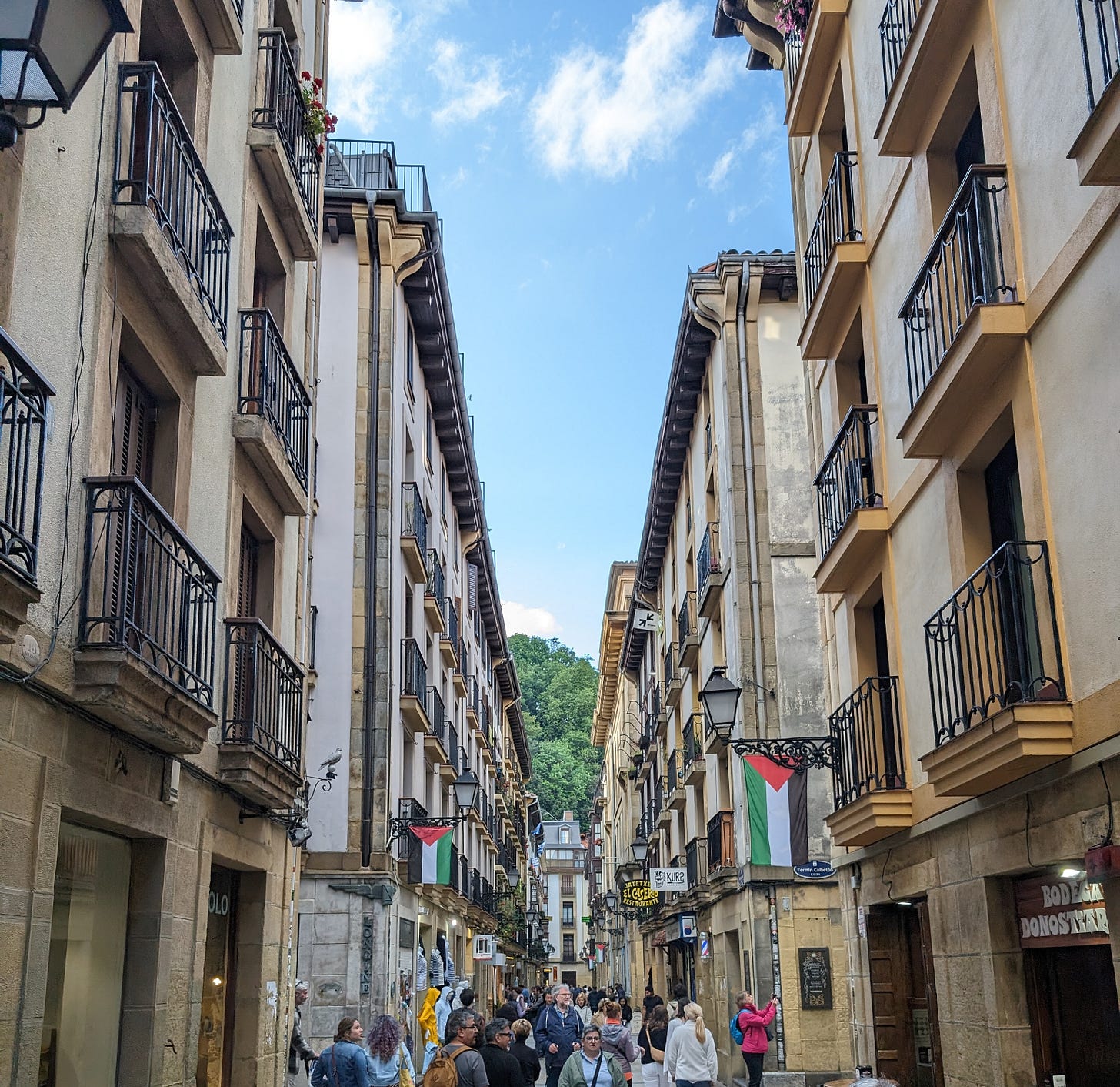 Perhaps it is this connection to history which allows the Catalans of Barcelona such a clear-eyed perspective on more modern events. Walking the labyrinthine alleys of the Gothic Quarter I was struck by how many Palestinian flags I saw draped from terrace railings. I couldn’t go from one block to another without encountering pro-Palestinian graffiti or posters. In fact, I found this to be true to the entire Northern swath of Spain in which I traveled, from Catalonia to Aragon to Euskadi. Obviously there is some connecting thread, or suture, stitching the scars of these places to the bleeding wound in Gaza.