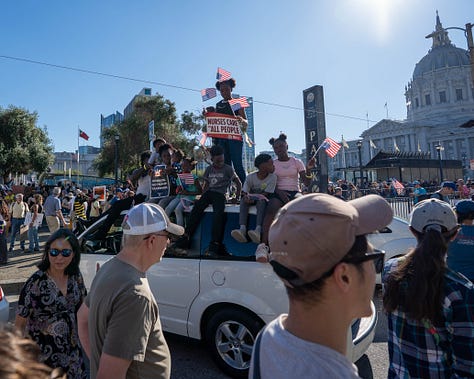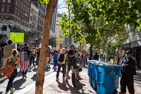 I think it was the subconscious recognition that their just rage was in the process of being sublimated that drained some of the life from the San Francisco protest. Unlike the Soviet Union, where protest was treated as a cancer to be violently excised, in America these kinds of protest function more like a booster shot, vaccinating the country against the real danger, direct action. We march, chant, and livestream, and the organism registers no fever. The cops smile and pass out stickers; the mayor issues a statement about civic engagement. The contagion of unrest never quite takes.