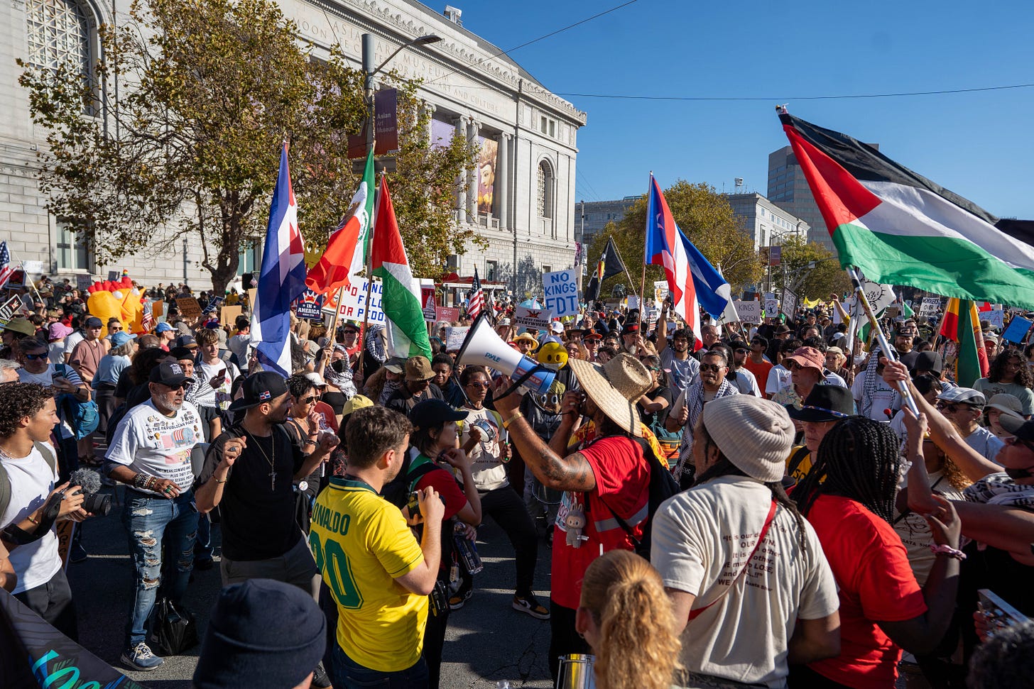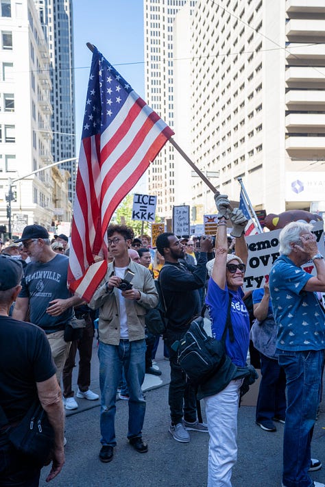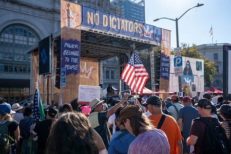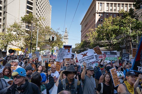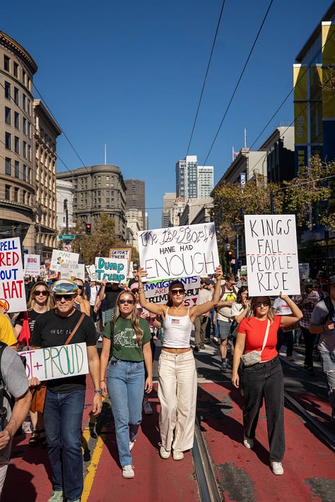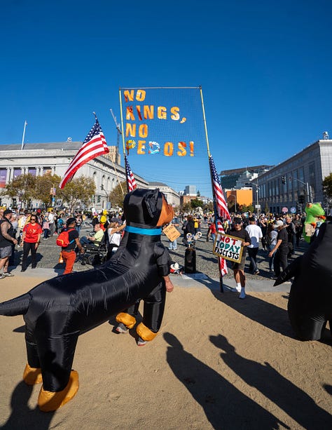 October 18th marked the second “No Kings” protest that spanned over 1700 cities across the country and brought millions to the streets, no small feat and laudable in and of itself. However, after spending the day milling around with organizers and protestors alike, I was more perplexed than I was before. Earlier this year, I’d covered the first “No Kings” rally in San Jose. Then, as now, I was skeptical that the movement could harness the prevailing discontent and turn it into something organized, but I still hoped that the collective energy might, at least this time, cohere into something unified. Instead, it still felt very much like the 18th Brumaire’s sack of potatoes.