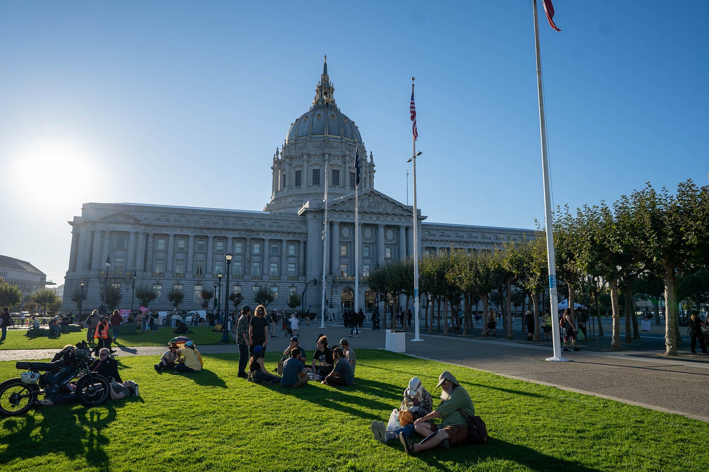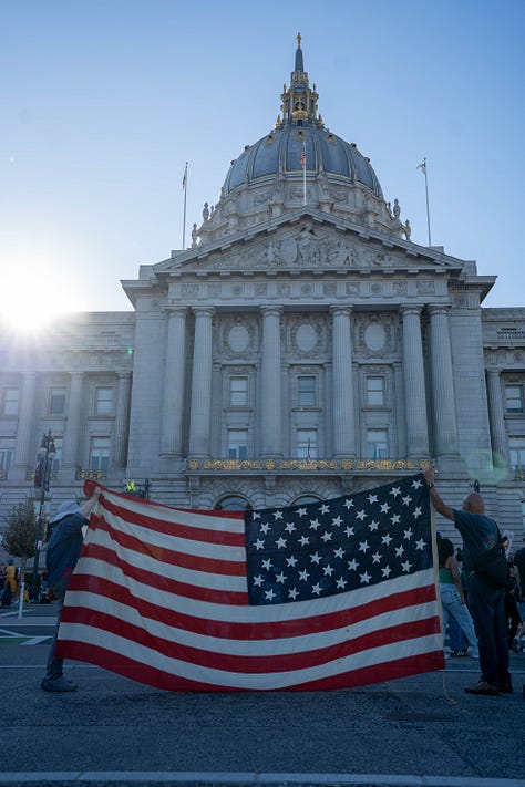 As I watched that drumline on McAllister, a small, defiant refusal to stay in line, I realized that was the closest thing we had to real political life: a brief flare of autonomy before absorption. Their rhythm cut across the official cadence of the march, disrupting the choreography of permission. For a few minutes, you could feel something like collective possibility, the kind that neither politburo nor PR team could manufacture or contain. Then, just as suddenly, it was gone, folded back into the parade of acceptable dissent, the music fading between police barricades.