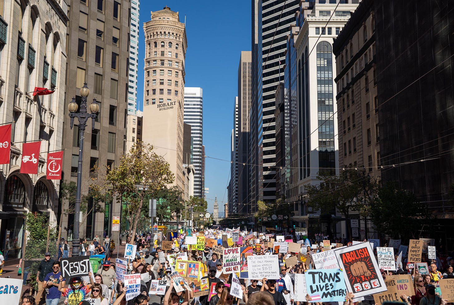 As I marched down Market street at the front of a 50k person procession, a clunky aphorism kept running through my mind. It was something an old Communist once said to me on a rooftop bar overlooking the Mekong River in Vientiane Laos. “The fall of the Soviet Union didn’t prove America’s virtue, it only proved that when two pathogens infect the same body, the most virulent will kill you first.” He was a chemist, not a virologist and more than a little drunk, but I understood what he meant. America, in his mind, was a stand-in for everything that’s dangerous about capitalism and damnit, as I watched tens of thousands of San Franciscans peacefully pass block after block of police cordons, I couldn’t help but think he might be right.